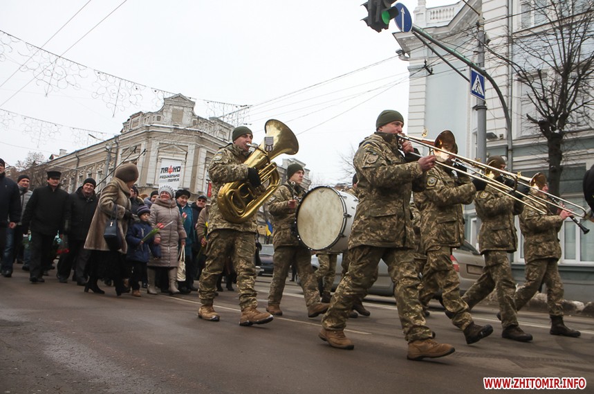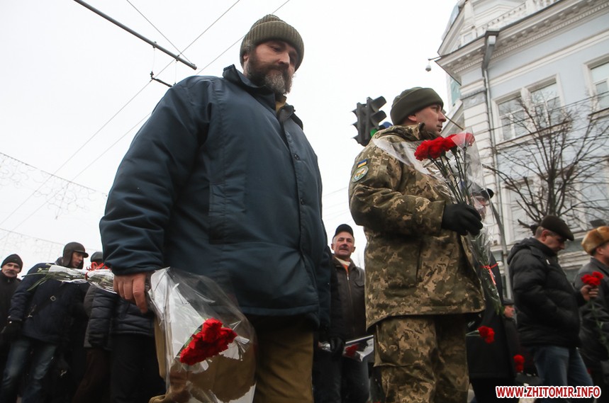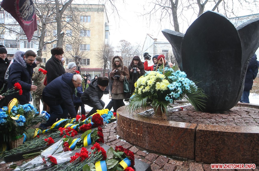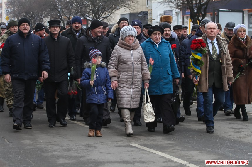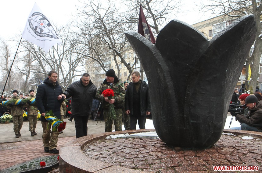 У Житомирі кілька сотень людей 15 лютого з оркестром і прапорами влаштували ходу від Будинку правосуддя до пам’ятника «Чорний тюльпан» на Новому бульварі, аби згадати побратимів, що загинули під час воєнних дій 1979-1989 років.