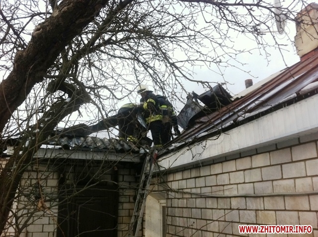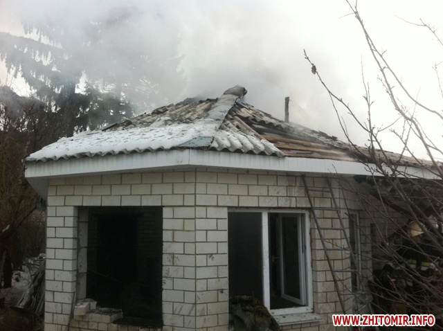 «21 лютого о 08:06 до Служби порятунку «101» м. Житомир надійшло повідомлення про пожежу в приватному житловому будинку. На місце події виїхало два відділення рятувальників 2-ї Державної пожежно-рятувальної частини. З’ясувалося, що вогнем охоплено частину покрівлі та будинку. До прибуття вогнеборців господарка, яка і виявила загоряння, разом із немовлям покинула оселю через вікно – адже щоб дійти до дверей жінці необхідно було пройти крізь палаючі та задимлені кімнати», – зазначається у повідомленні.
