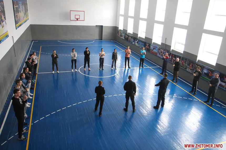 Спорткомплекс працює на базі Житомирського навчального центру підготовки поліцейських. Тут повністю відремонтували спортивну залу та залу тактичної підготовки, навчальну аудиторію, стрілецький тир, роздягальні і санвузли.