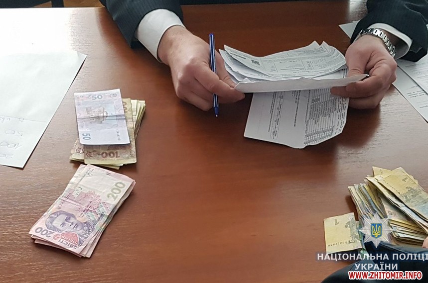 27 лютого працівники Житомирського управління внутрішньої безпеки ДВБ Нацполіції спільно з головним управлінням НП та під процесуальним керівництвомпрокуратури області затримали жительку обласного центру, яка, намагаючись уникнути адміністративної відповідальності, пропонувала тисячу гривень одному із заступників керівника Житомирського відділу поліції. За вказаним фактом розпочато кримінальне провадження.