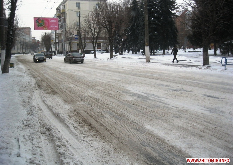 На посипання доріг і тротуарів Житомира і ніч на 28 лютого використано 137 т піскосуміші, 20 т відсіву та 1 тонну бішофіту.