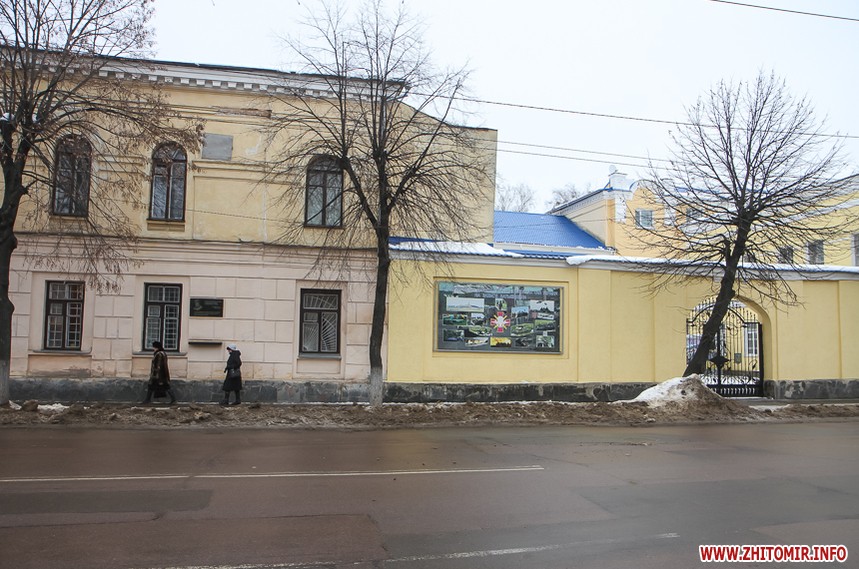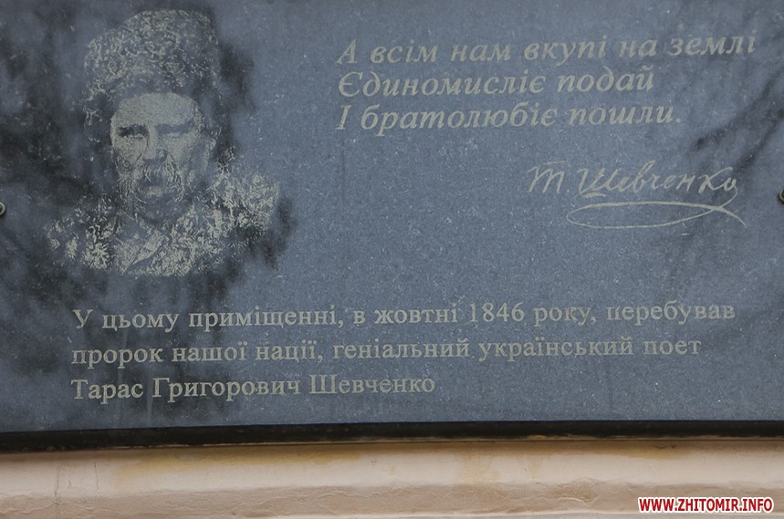 Який вигляд мають вулиця Шевченка, анотаційна дошка на фасаді військкомату на Великій Бердичівській у Житомирі та колишнє архієрейське подвір'я, де зупинявся поет у жовтні 1846 року, бачила наш фотокореспондент.