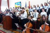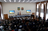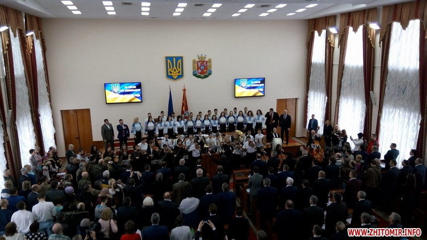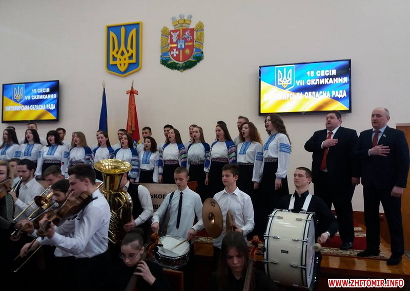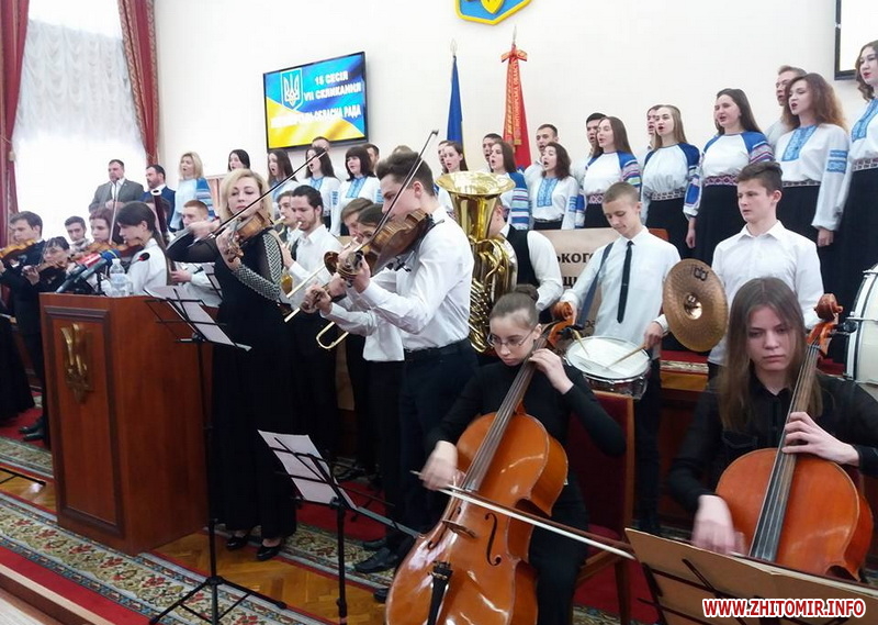 Гімн України на початку сесії цього разу виконали студенти Житомирського музичного училища ім. В.С. Косенко під супровід оркестру.