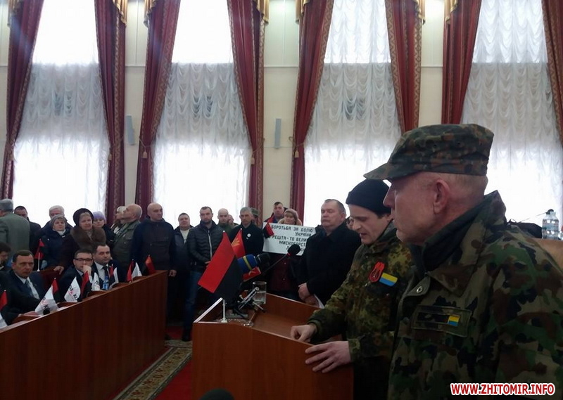 Після цього слово взяв Михайло Сліпченко, який виступив від імені представників добровольчих батальйонів.