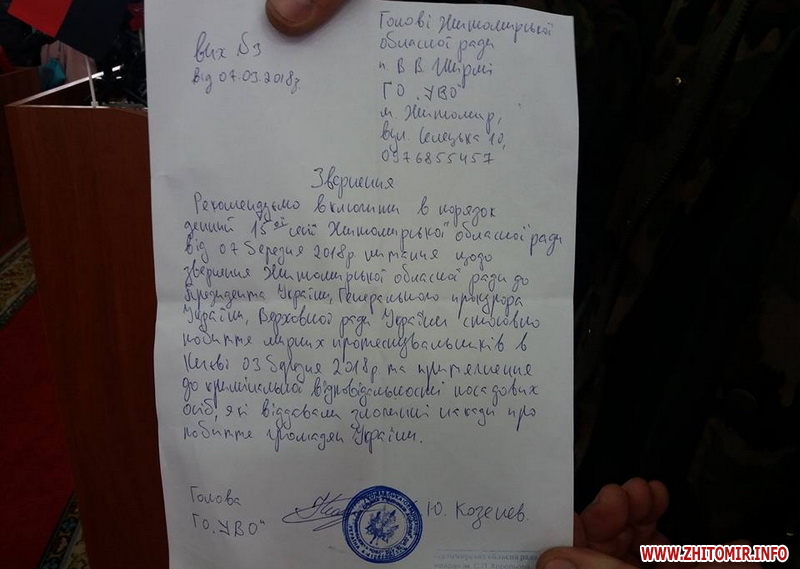 За включення запропонованого звернення до порядку денного проголосували 55 депутатів з 58 присутніх на сесії (всього в облраді 64 депутати).