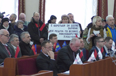 Врешті, після більш як півгодинних обговорень звернення активістів вносять до порядку денного. Голова облради Володимир Ширма зачитує текст звернення та вносить свою пропозицію.