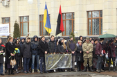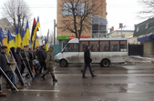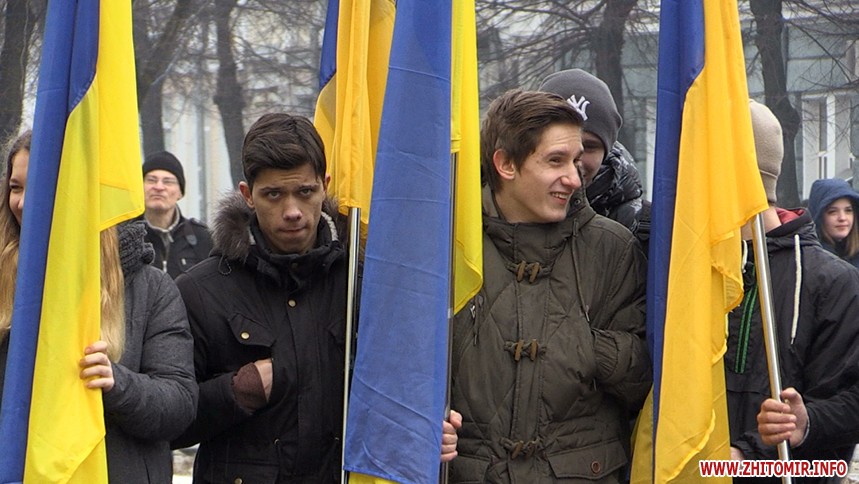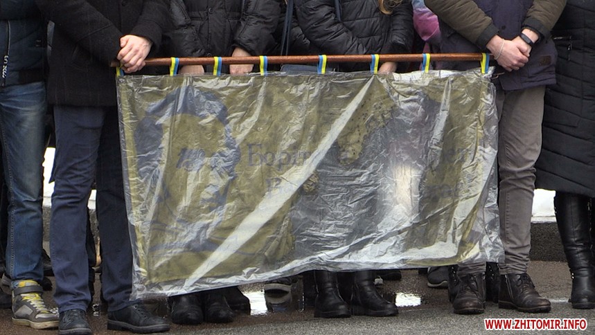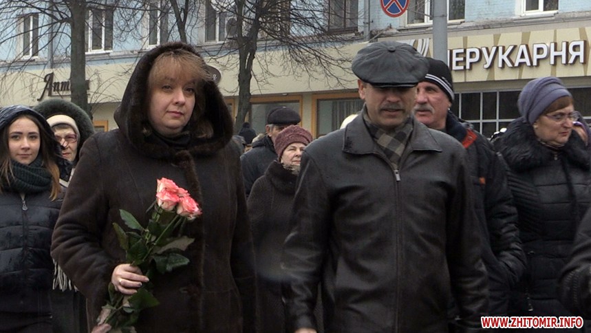 Після короткого мітингу біля меморіалу Героїв Небесної сотні та декламації поезії, люди сформували колону та пройшли вулицею Великою Бердичівською до скверу Тараса Шевченка.