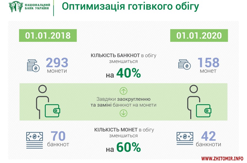 «Якщо екстраполювати ці рішення на сьогоднішню структуру готівки в обігу, з нього зникне майже 60% від загальної кількості монет в обігу – це понад вісім мільярдів монет дрібних номіналів. Водночас, більш ніж один мільярд банкнот буде замінено монетами. Тож середня кількість монет, що припадають на одного українця, скоротиться вдвічі, а банкнот в обігу стане на 40% менше. І цей ефект ми побачимо вже через два-три роки», - зазначив в. о. голови Національного банку Яків Смолій.