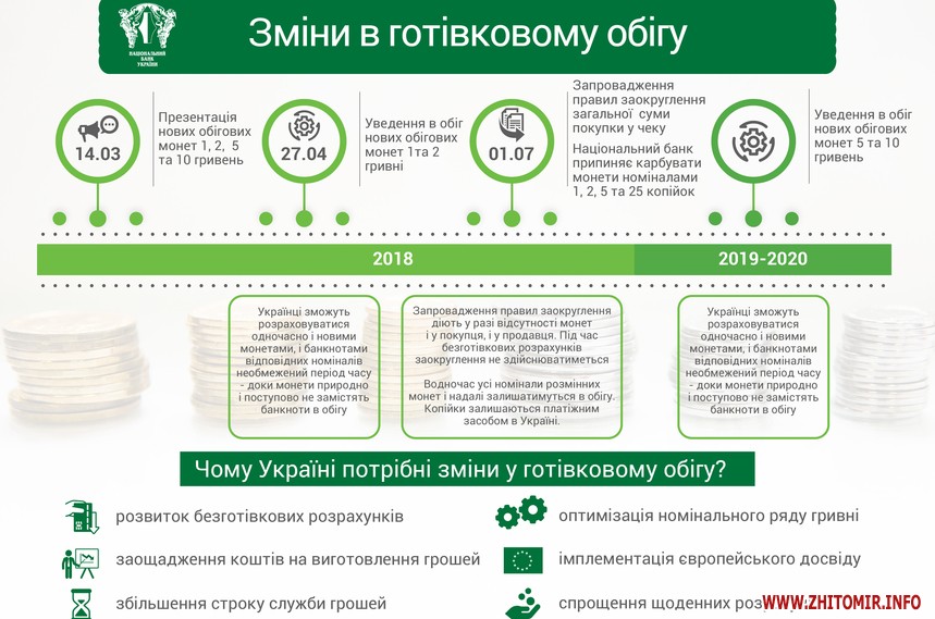 Під час презентації нових обігових монет в. о. голови Національного банку України Яків Смолій також оголосив, що у рамках продовження політики оптимізації готівкового обігу з 1 липня 2018 року в Україні застосовуватимуться правила заокруглення загальних сум готівкових розрахунків.