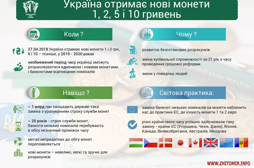 Національний банк України відповідно до політики оптимізації готівкового обігу України презентував нові обігові монети номінальною вартістю 1, 2, 5 та 10 гривень.