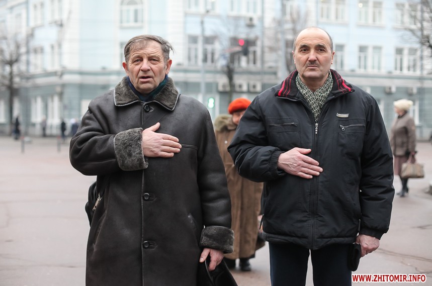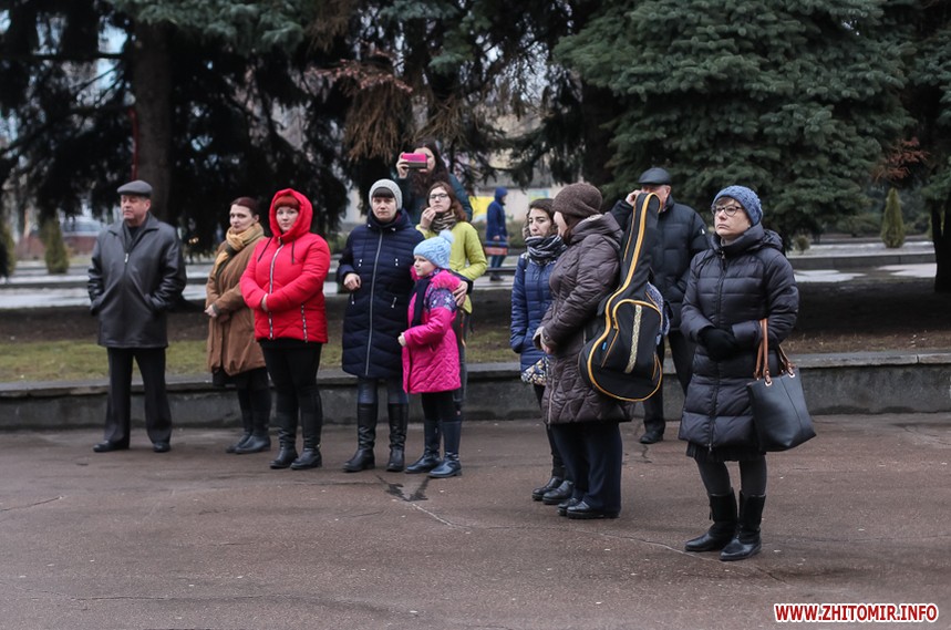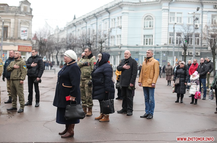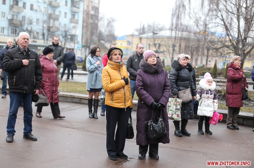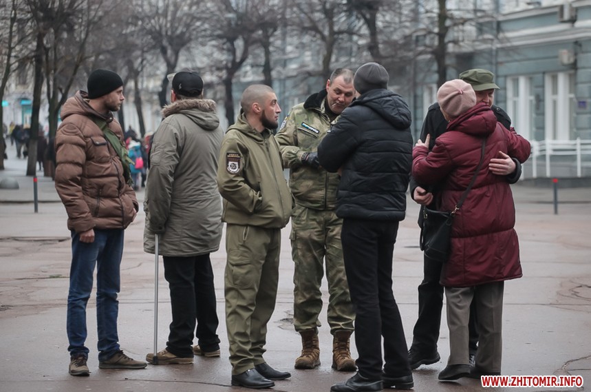 14 березня біля пам’ятного знаку Героям Небесної сотні на майдані Корольова в Житомирі зібралися люди. За приблизними підрахунками, їх близько сотні. О 17 годині тут розпочалися урочистості на відзначення Дня українського добровольця.