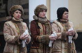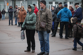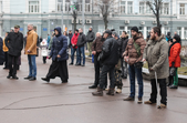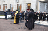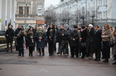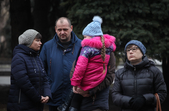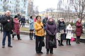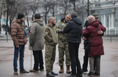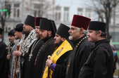 Серед присутніх - представники церков, волонтери, кілька десятків колишніх військових, серед яких бійці 95-ї бригади та добробатів.