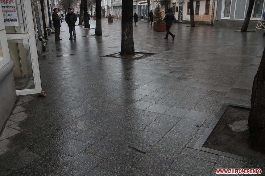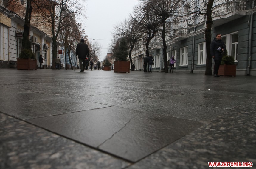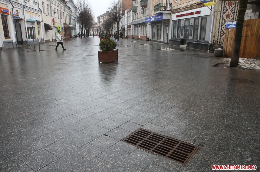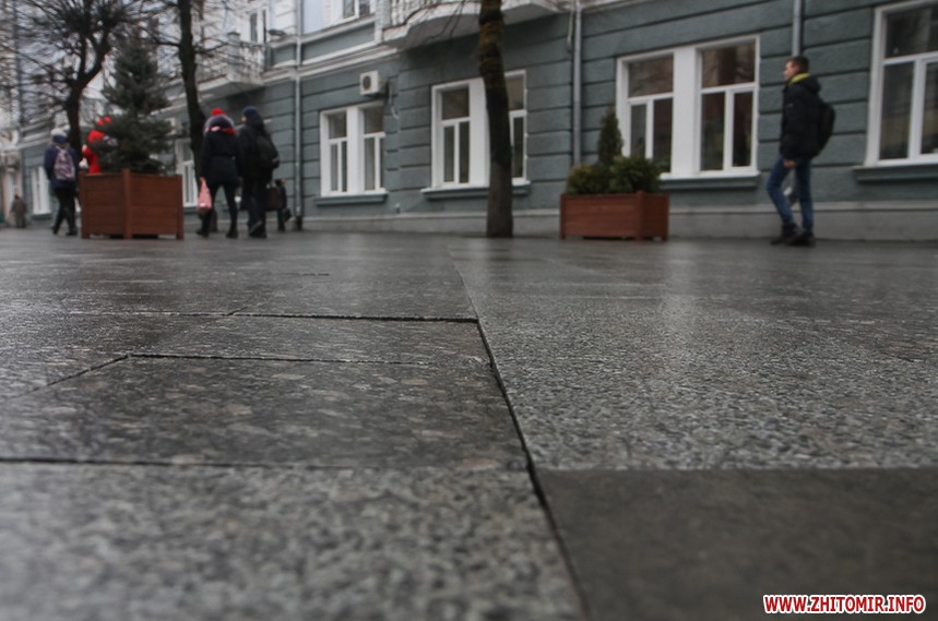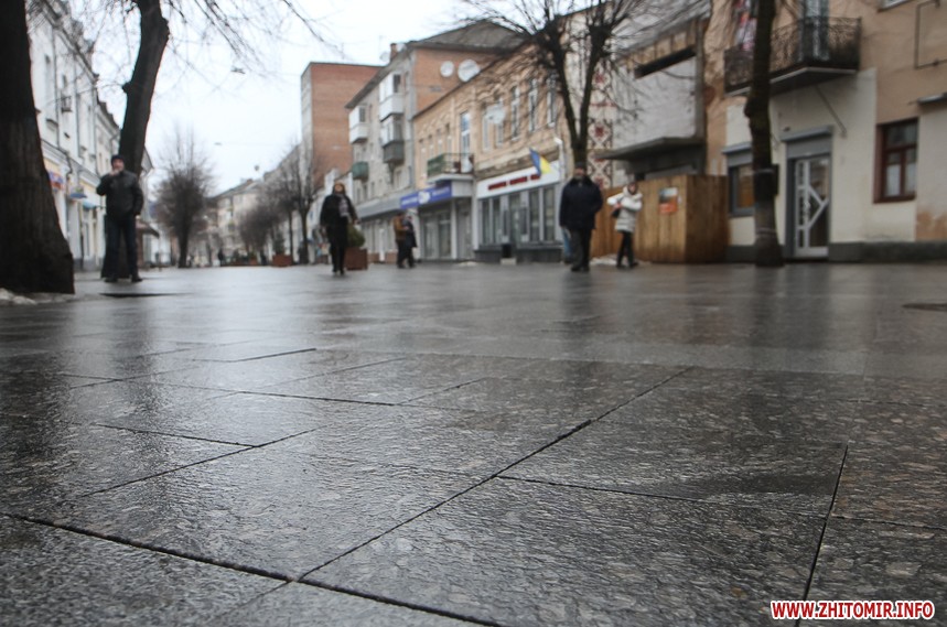 Вже вдруге єдина пішохідна вулиця Житомира перезимувала з новою гранітною плиткою. Житомир.info вирішив подивитися, чи витримала цьогорічні морози і сніг гранітна плитка на вулиці Михайлівській.