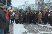 За словами мітингарів, житомиряни приєднались до всеукраїнської акції протесту і наголошують, що вона є мирною.