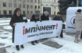 У неділю, 18 березня, близько двохсот людей зібрались на майдані Корольова у Житомирі. Учасники акції прийшли із державними прапорами та плакатами із закликом до імпічменту президента України.