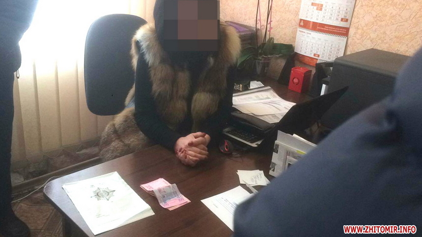 «У вівторок, 20 березня 2018 року, прокуратурою Житомирської області спільно із управлінням захисту економіки та головним управлінням Нацполіції в області під час проведення негласних слідчих (розшукових) дій задокументовано факт одержання начальником Бердичівського районного сектора управління міграційної служби в області чергової частини неправомірної вигоди на суму 3500 грн. Правоохоронці затримали чиновницю сьогодні зранку, близько 10.00 год., безпосередньо у службовому кабінеті державної установи, що у м. Бердичів. Це друга частина неправомірної вигоди, яку 38-річна посадовець вимагала від бердичівлянки за прискорення та безперешкодну видачу закордонних біометричних паспортів для неї та її родичів», - інформує прокуратура.