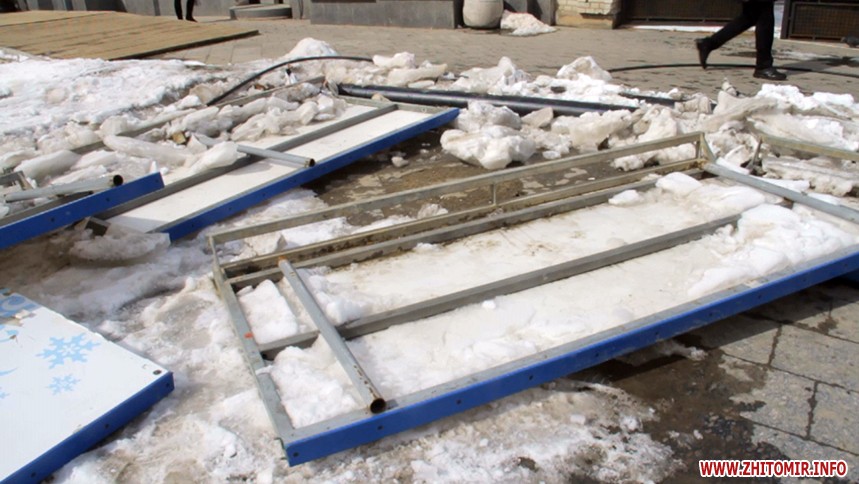 У Житомирі на Михайлівській 22 березня комунальники почали розбирати ковзанку, відкриття якої відбулося 26 грудня 2017 року.