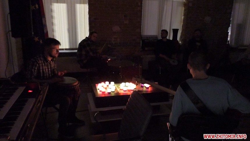 24 березня за двадцять хвилин до восьмої вечора у Центрі розвитку місцевого самоврядування в Житомирі тривають останні приготування до всесвітньої акції «Година Землі». Посеред імпровізованої сцени – стіл із свічками, музиканти налаштовують інструменти до еко-джему, а глядачі, яких зібралось близько півсотні, влаштовуються зручніше. Співорганізатор акції Ілля Грицанюк розповідає: «Година Землі» у місті розпочалась іще по обіді, з еко-лекторію, а от вечірня акустична імпровізація, а згодом і вимкнення підсвітки на будинку Трибеля – це своєрідний фінал дня.