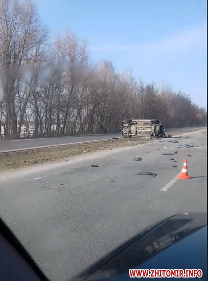 «25 березня близько 15:00 на 17 км траси Київ-Могилів-Подільський, село Двірець Житомирський район, водій автомобіля Volkswagen Caddy, 1984 р.н., житель Київської області, рухаючись в напрямку Житомира не впорався з керуванням, і під час обгону зачепив частиною бампера свого автомобіля балку вантажного автомобіля Mercedes-Benz, що рухався попереду, під керуванням жителя Черкаської області, 1982 р.н. У результаті ДТП автомобіль Volkswagen потрапив у занос та декілька разів перекинувся. У результаті ДТП травми у вигляді забоїв м’яких тканин отримали водій, пасажирка, 1988 р.н., та хлопчик, 2016 р.н. Усіх доставлено до медичних закладів», - сказали у поліції.