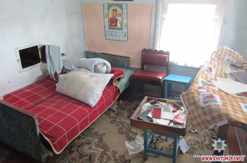 «Вся обстановка в оселі загиблої вказувала на те, що хтось увірвався до будинку: пошкоджені вхідні двері, усередині перевернуті побутові предмети і речі, а сама літня господиня зв’язана мотузкою. З будинку зникли грошові заощадження в сумі майже 8 тисяч гривень та інші бабусині речі», - повідомив начальник ГУНП В’ячеслав Печененко.