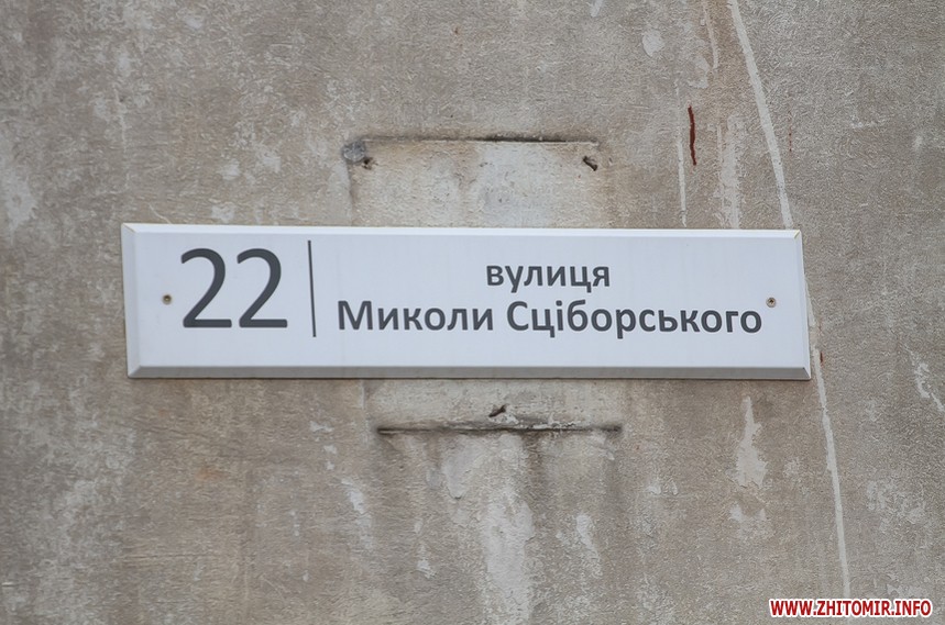 Житомирська вулиця Миколи Сціборського, яка до перейменування в 2016 році носила ім’я радянського партійного і військового діяча Яна Гамарника, довжиною не більше кілометра. Вона починається біля російського кладовища, тягнеться уздовж восьмиповерхової будівлі обласного управління статистики та кондитерської фабрики й закінчується «дірявою» відсівною дорогою серед приватних будинків.