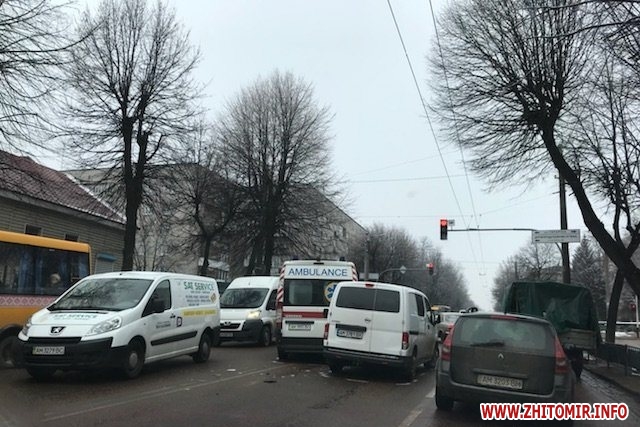 У Житомирі 29 березня на перехресті вулиць Велика Бердичівська та Гагаріна сталася дорожньо-транспортна пригода.