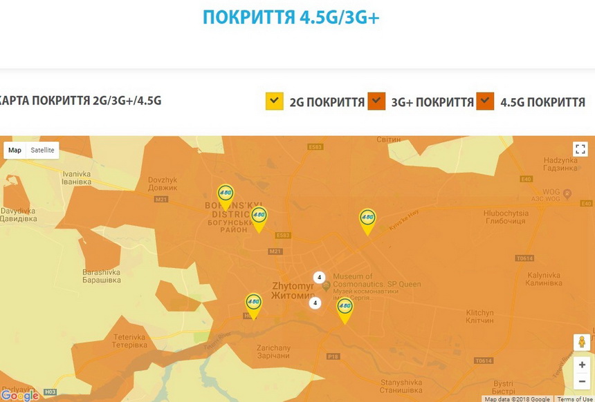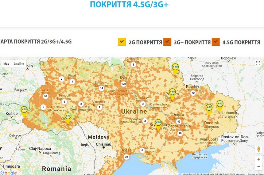 На сайті оператора вже можна подивитися карту покриття сіткою 4.5G.