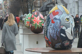 На Михайлівській у Житомирі розпочалось відзначення великоднього тижня. Містяни можуть придбати різноманітні сувеніри, спробувати домашнього закарпатського вина, сирів та ковбаси домашнього приготування.