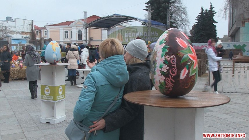«Насправді зголосилось дуже багато майстрів. Розпочали ми вчора. Сьогодні вдень також буде відбуватись інформаційно-просвітницька культурно-розважальна програма «Зустрічаємо свято разом» за участі наших майстрів народної творчості. Сім’ї з дітками матимуть змогу разом із майстрами зробити вітальну листівку, розписувати писанки, робити ляльки-мотанки. Багато буде майстер-класів. Також, щодня будуть виступи хорових та інших колективів на великій сцені. Кожного дня священики різних конфесій будуть проводити служби. А вже безпосередньо 8-го числа мер буде нагороджувати учасників конкурсної програми «Авторська писанка». Якщо ви мали змогу побачити, то на Михайлівській дуже багато писанок. Їх робили діти та майстри професіонали, і художня наша школа, і загальноосвітні школи. Батьки та діти, які хотіли - могли і взяли участь. І Сергій Іванович пообіцяв, що переможці матимуть змогу поїхати в Коломию, в музей писанки. Тобто, це буде такий гарний та приємний подарунок. 8 числа ввечері буде велика концертна програма» Великодні дзвони». 9 квітня відбудеться традиційний поливаний понеділок. Він буде вдень з 12-ї години. Молодь теж зможе взяти участь у багатьох різноманітних конкурсах і заходах. Ми будемо сподіватись, що буде тепло і це поливаний понеділок вийде таким, яким ми його запланували: веселим та цікавим, з квестами та з іграми», - розповіла начальник управління культури Житомирської міської ради Ніна Рябенко.