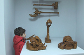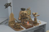 Родзинка п’ятої експозиції – футуристичні вироби з дерева у виконанні Юрія Барановського. Військова техніка, зброя, мечі, іграшкові автівки, які з легкістю впишуться у будь-який інтер’єр свого власника.