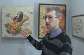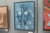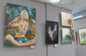 Погляди поціновувачів прекрасного привертають і сюрреалістичні роботи Дмитра Петрухнова, який у повсякденному житті працює у драмтеатрі, створюючи бутафорію та декорації до вистав.