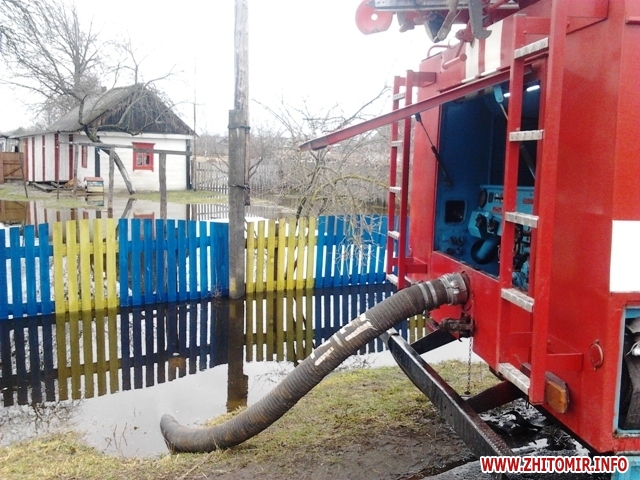 «2 квітня об 11:30 до Служби порятунку «101» надійшло повідомлення про те, що підтоплена територія приватного домоволодіння в с. Покровське Олевського району. Знадобилася допомога рятувальників у відкачці води. З’ясувалося, що підтоплені житловий будинок, господарчі будівлі та присадибна ділянка. Після п’ятигодинної роботи, за допомогою автоцистерни та всмоктувального рукава, бійці ДСНС відкачали 864 кубометрів води», - інформує УДСНС.