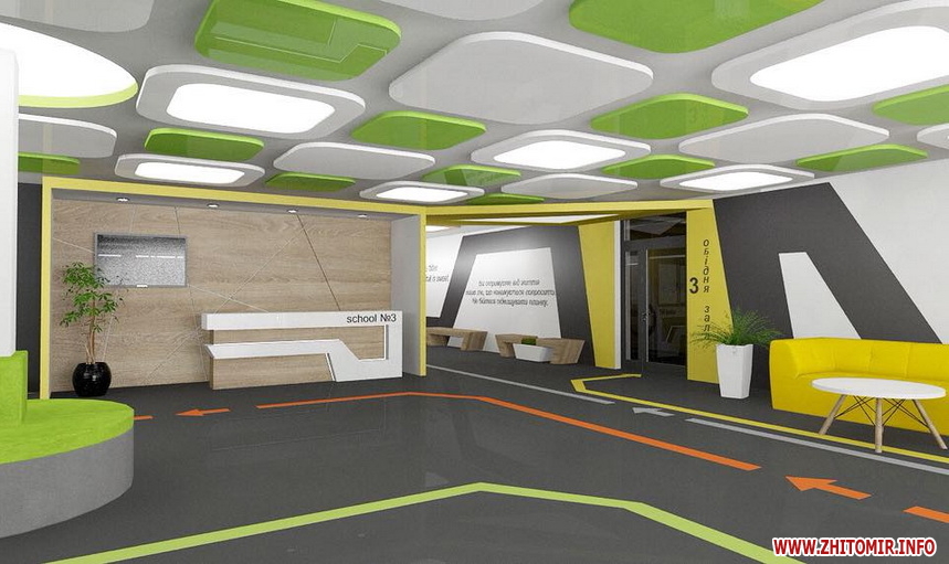 Міський голова Сергій Сухомлин 4 квітня на своїй сторінці у Facebook опублікував фото проектів внутрішнього дизайну нового корпусу гімназії №3, та попросив житомирян писати про свої зауваження.