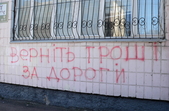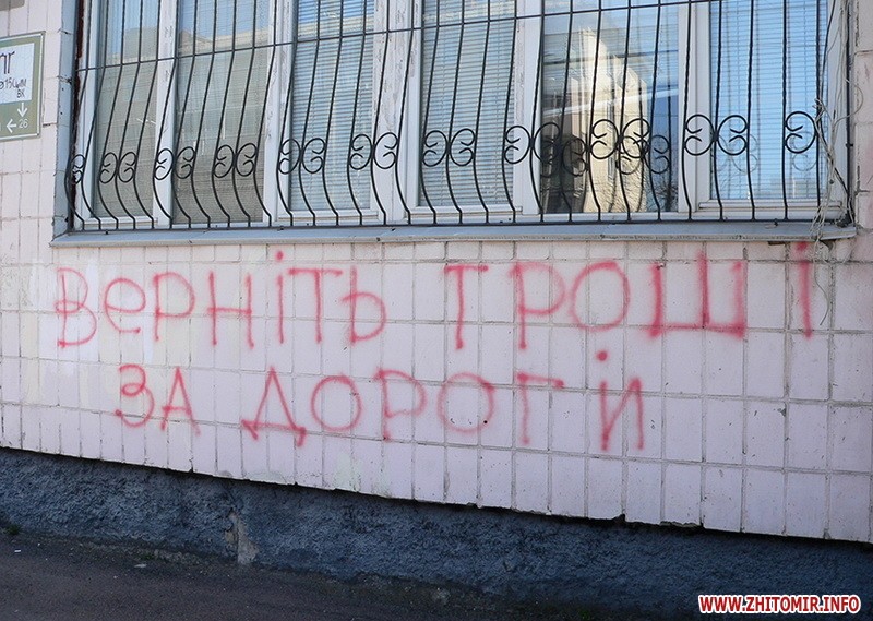 «Вони ніяк не представлялись, вони просто зібрались біля центрального входу в приміщення і почали «рвати» двері. Почали вискакувати, вигукувати, обписувати з балончиків фарбою стіни приміщення. Вимагали якісь кошти, незрозуміло які. Почали викрикувати, мовляв, віддайте нам гроші. Вимагали якісь кошти з зарплати кожного працівника. Я був просто шокований, бо незрозуміло, хто це, що це, для чого це. Запитували: «Хто краде наші гроші? Ви їх крадете». У нас грошей тут нема взагалі, ми державна установа», - розповідає перший заступник начальника Служби автомобільних доріг в Житомирській області Сергій Заїка.