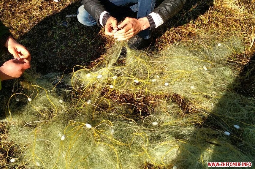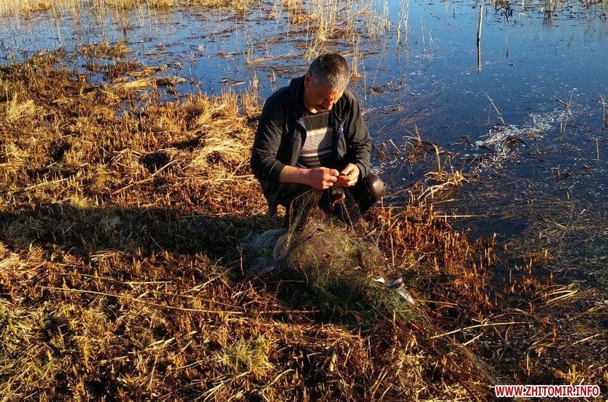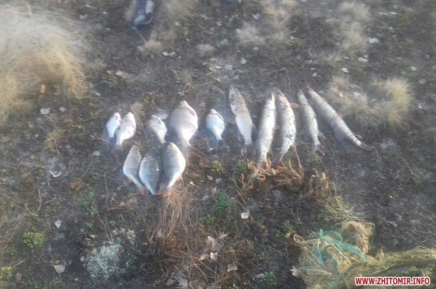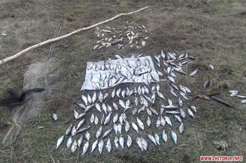 «3 квітня в с. Тетерівка Житомирського району виявлено двох громадян, які ловили рибу за допомогою остроги. Острога – це заборонене колюче знаряддя лову (нагадує вила або тризуб). Побачивши патрульних, правопорушники почали тікати, ховатися у густому очереті. Наш інспектор змушений був зайти у крижану воду для того, щоб їх затримати. Було складено 2 адміністративних протоколи за грубе порушення правил рибальства. Також, 6 квітня двома оперативними групами під час відпрацювання Коростенського і Хорошівського районів було виявлено 6 грубих порушень правил рибальства. Правопорушники ловили рибу забороненими знаряддями лову - сітками, павуками. Було виловлено 21,5 кг риби (переважно ті види риб, які саме у цей час нерестяться – щука, плітка, окунь). Збитки, завдані рибним запасам області, становлять 26 200 грн», - йдеться у повідомленні.