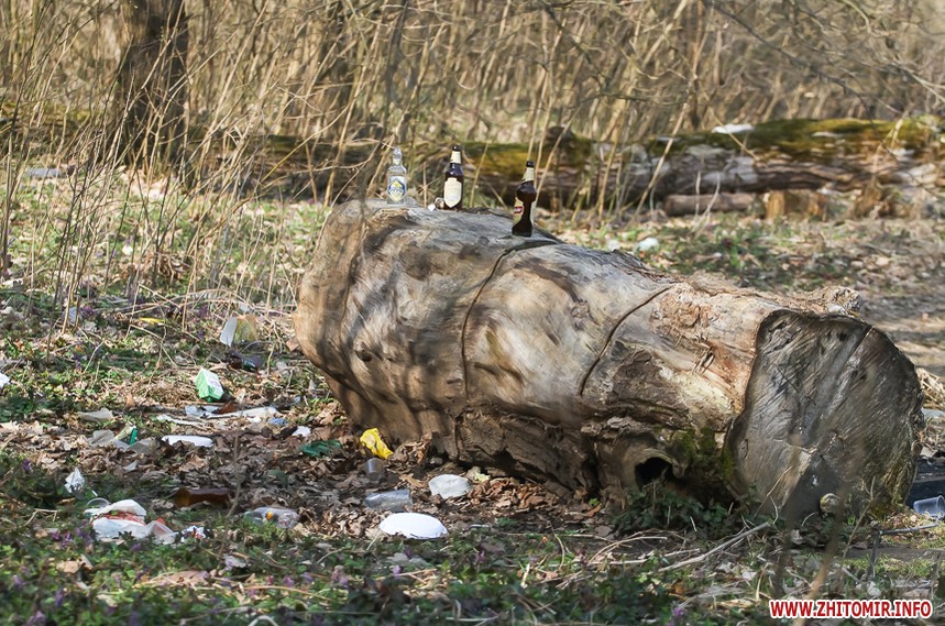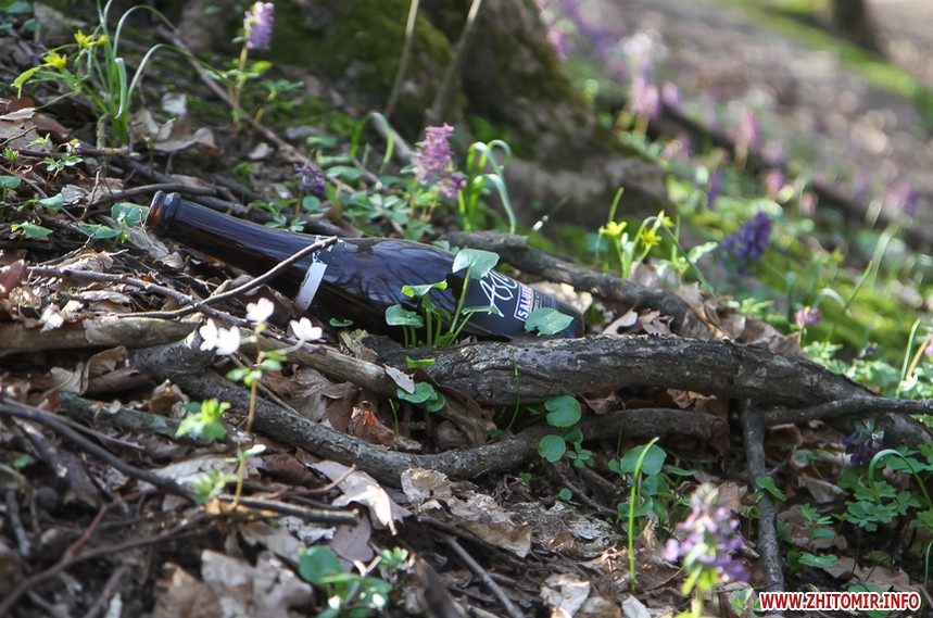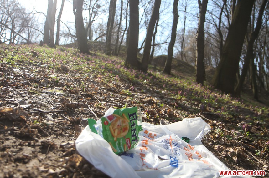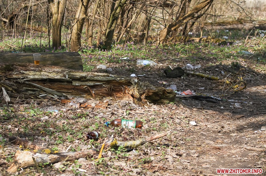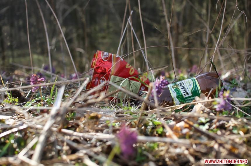 Весняну картину псує залишене відпочивальниками сміття – пляшки, пластикові склянки, целофанові пакети. Уздовж лісової дороги то зліва, то справа – смітники.