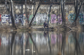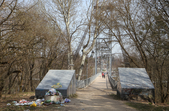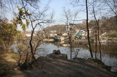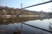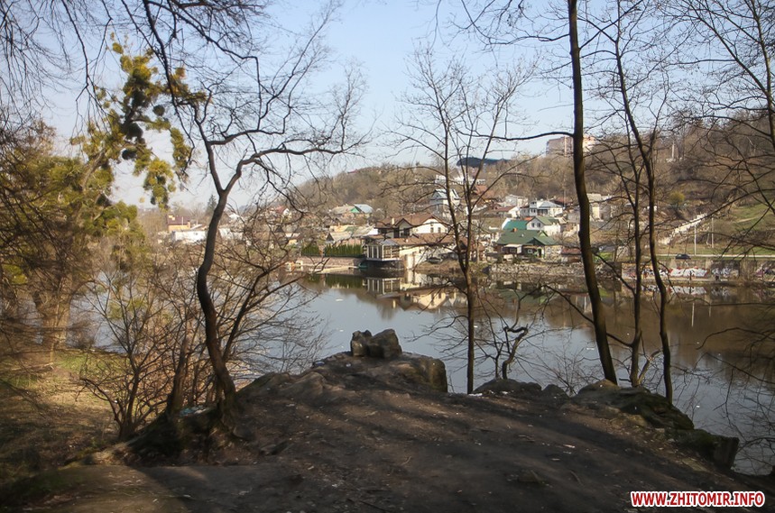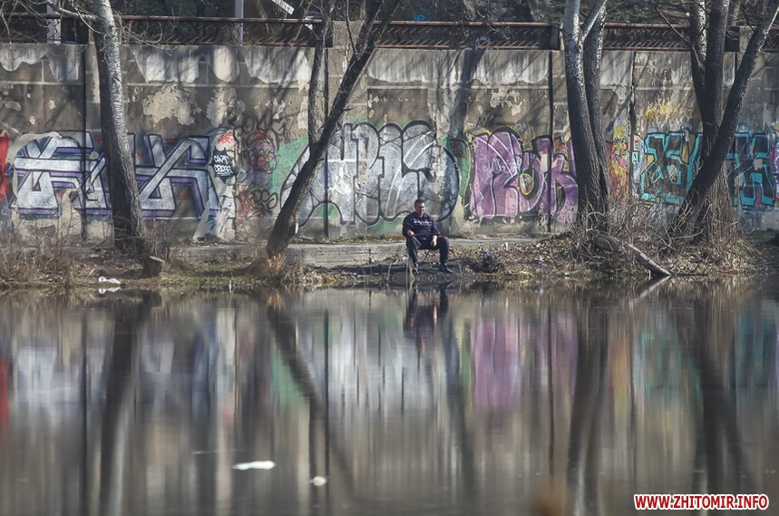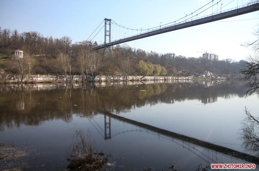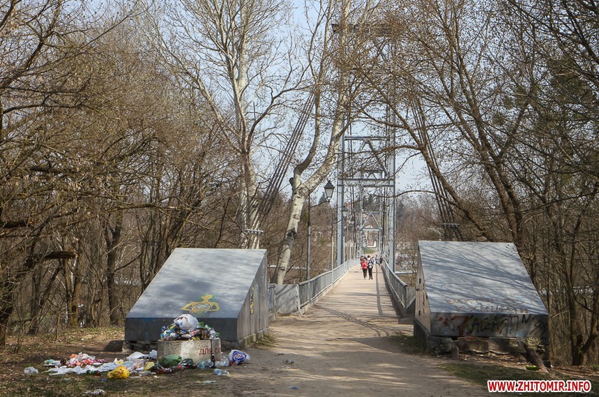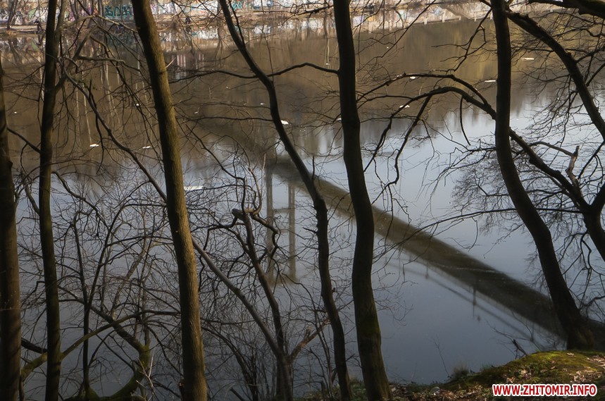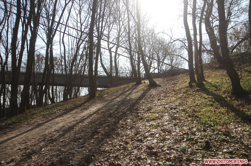 За підвісним мостом у парку Гагаріна тепло і хороше. Пробуджуються рослини, витикається травичка, зацвітають первоцвіти. Біліють лісові «зірочки» - анемони, над ними кружляють метелики і бджоли. Розтікся повноводий Тетерів, на мілині рибалять чоловіки. Вода біля берегів брудна, з жовтуватим відтінком.