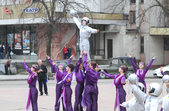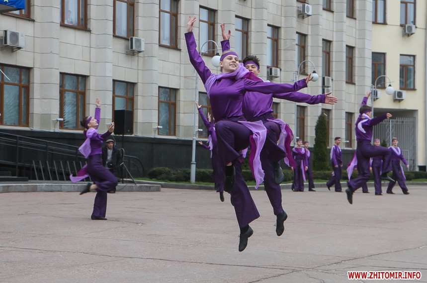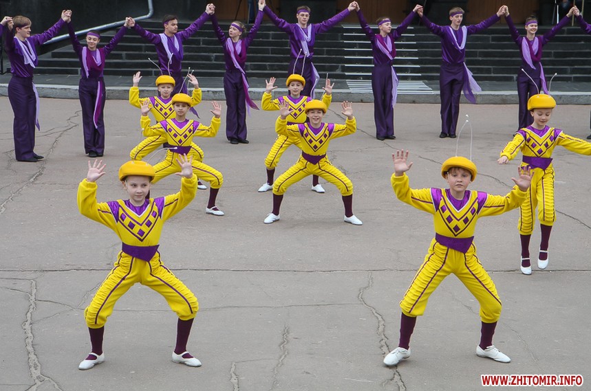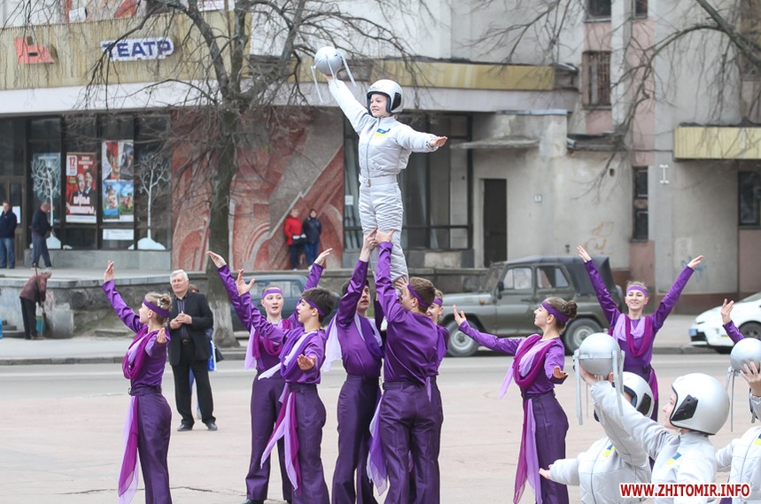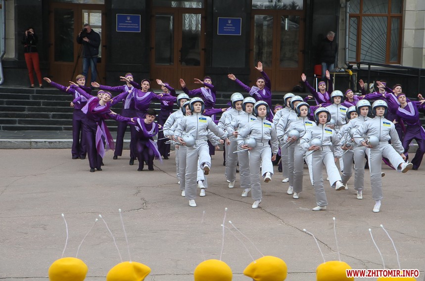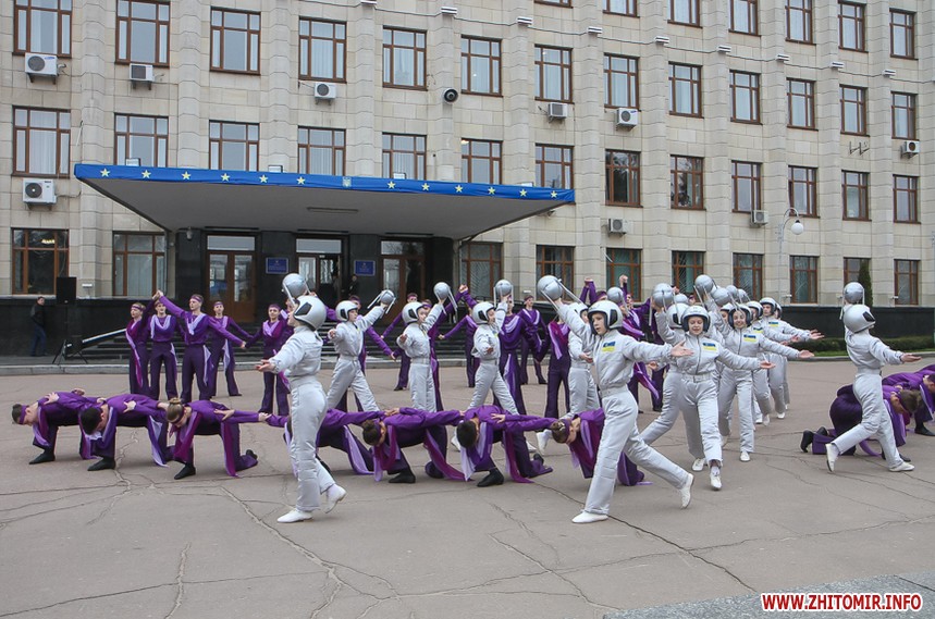 Крім покладання квітів та проходження роти почесної варти військового інституту імені С.П. Корольова для житомирян танцювали діти у космічних костюмах.