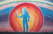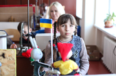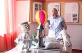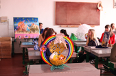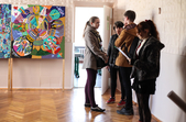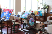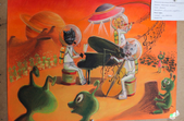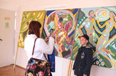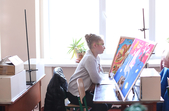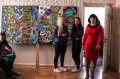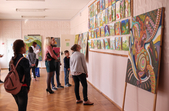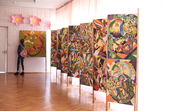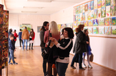 Паралельно з дитячою виставкою у коридорах центру експонується виставка тематичних робіт житомирського художника Василя Сірика, який нині разом з сином живе в родовому помісті у Пулинському районі Житомирської області.