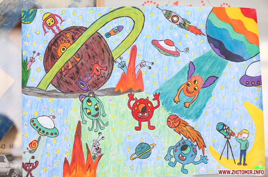 Організаторами конкурсу є, зокрема, Житомирська міськрада, ОДА та Житомирський музей космонавтики. Роботи учасників відтворюють реальні космічні явища та події, фантастичні сюжети та образи, уявлення школярів про космічні процеси у Всесвіті, розвиток Землі, інопланетних систем та позаземних цивілізацій.