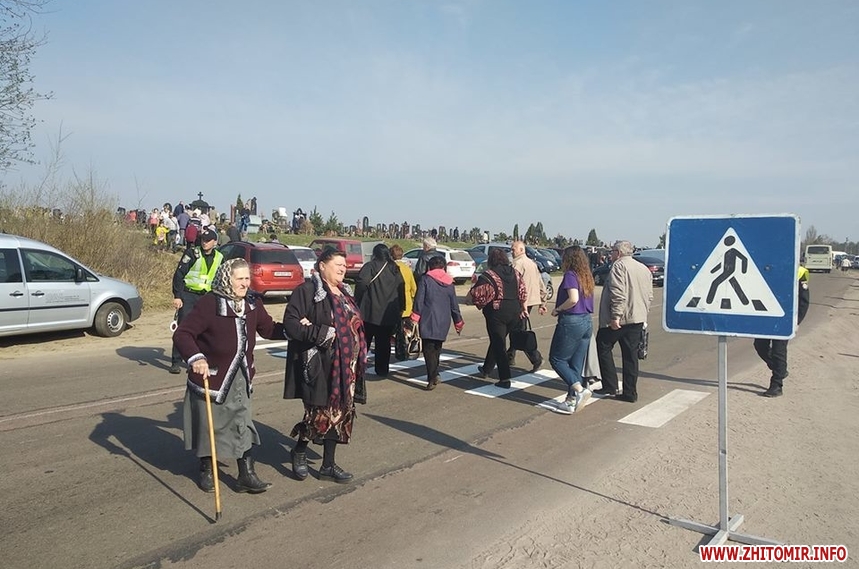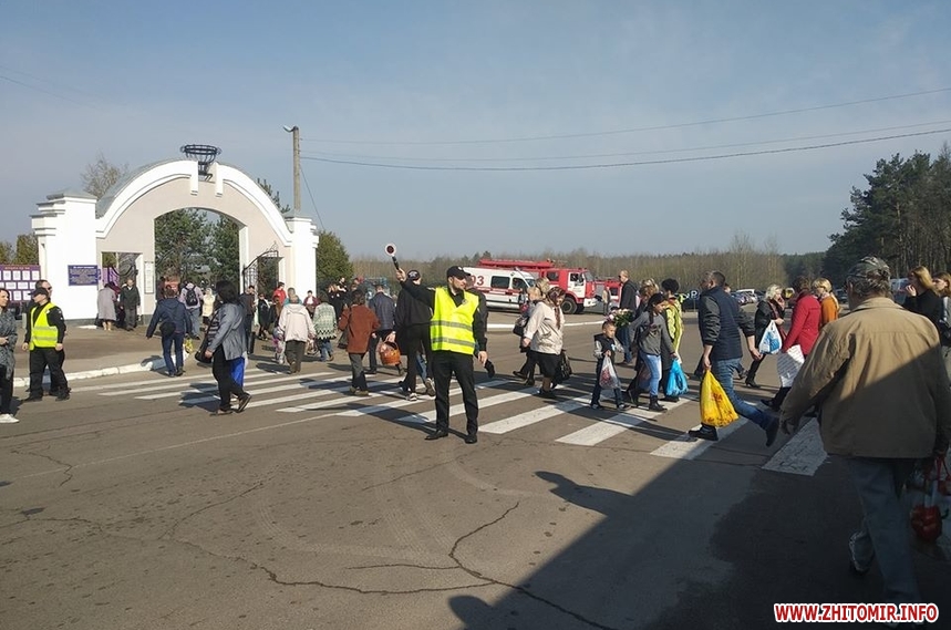«На зупинках зупиняються маршрутки, в яких номер маршруту закритий табличкою «спецрейс», вони їдуть на міське кладовище і всі мають платити по 5 грн. На майдані Перемоги біля танку утворилася така міні-автостанція, звідки автобуси різних перевізників курсують на кладовище. В районі кладовище працює патрульна поліція, є пожежна машина та автомобіль «швидкої допомоги, патрульні регулюють рух транспорту, допомагають людям переходити через дорогу. Людей багато, але все організовано, є кілька стоянок для автомобілів та зупинок маршруток», - розповів журналіст Житомир.info, який був на міському кладовищі.