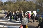 «Утворився затор з легковиків, також багато людей їдуть тролейбусами та йдуть пішки через ліс на кладовище», - інформує журналіст.