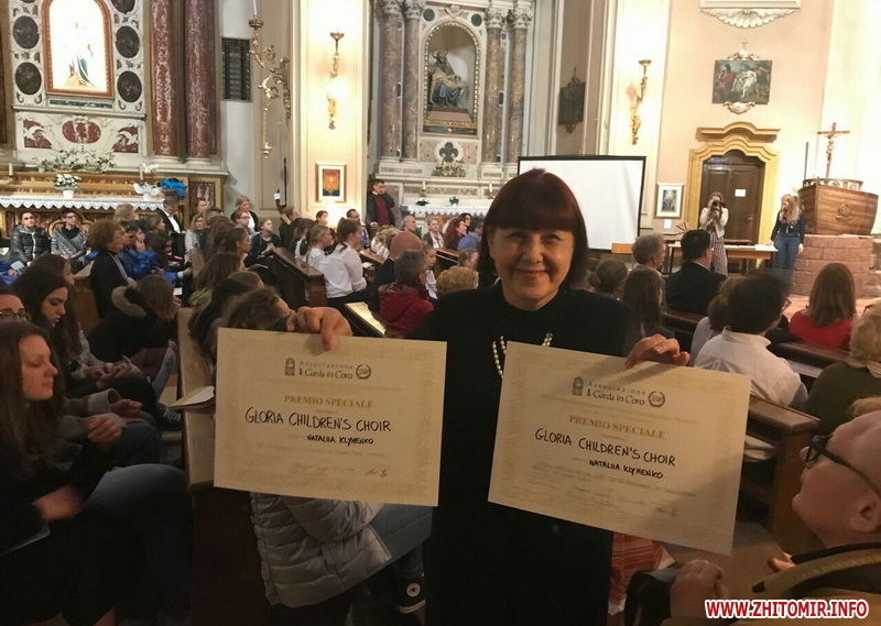 «Зразковий хор «Gloria» на найвищому професійному рівні представив нашу українську хорову культуру, отримавши дві срібні нагороди, спеціальний приз за краще виконання італійського твору «Mare» Марко Ферретті та диплом за краще виконання твору українського композитора Валерія Кікти «Закарпатський триптих». Нові перемоги в Італії співучих житомирян свідчать про те, що дитячий колектив з кожним днем творчо зростає та набуває професійності. І все це – завдяки художньому керівнику та диригенту Заслуженій артистці України Наталії Клименко та концертмейстеру Заслуженому діячу мистецтв України Олександру Клименко, які вкладають у зразковий хор «Gloria» свій педагогічний талант, майстерність і душу», - наголосили батьки вокалістів.