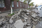 У Житомирі 19 квітня біля автодорожнього коледжу почали знімати на тротуарі асфальтне покриття.