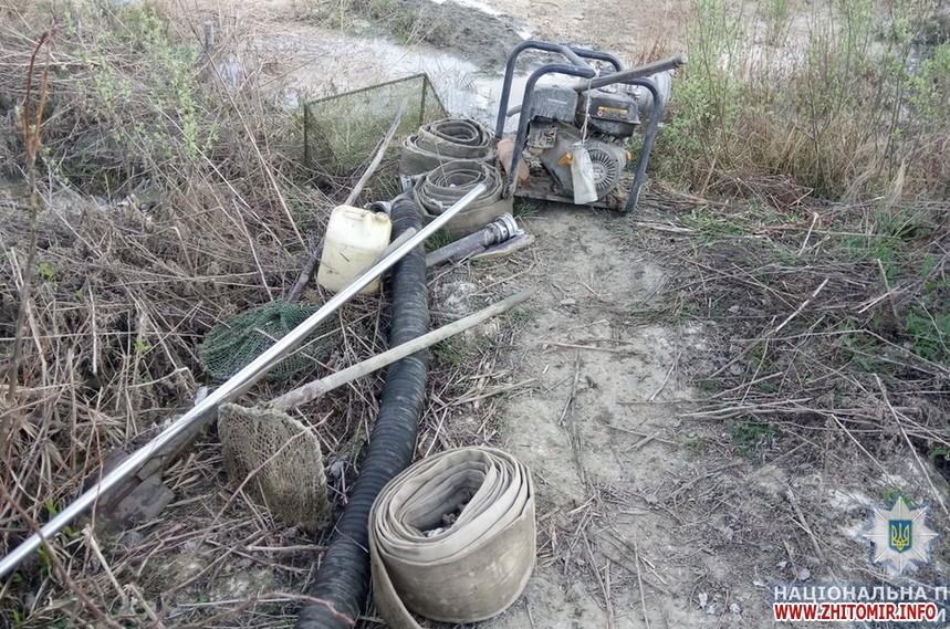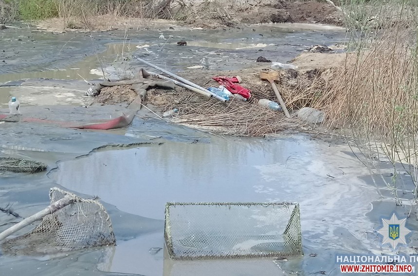 «З місця події правоохоронці вилучили мотопомпу кустарного виробництва, два пожежних рукави, водозабірний шланг, лопати, сачки та інше старательське приладдя. Затримані та усе обладнання були доставлені до Коростенського відділу поліції для подальшого з’ясування усіх обставин», - інформує відділ комунікації.