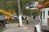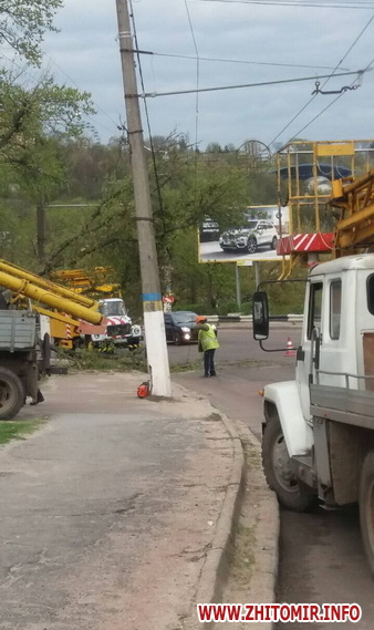 У Житомирі на Чуднівському мосту 19 квітня близько 17:20 на тролейбусні дроти впало дерево, рух електротранспорту призупинений.