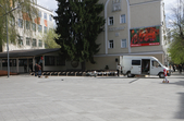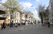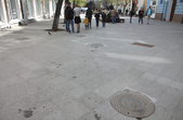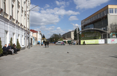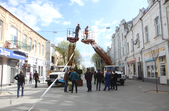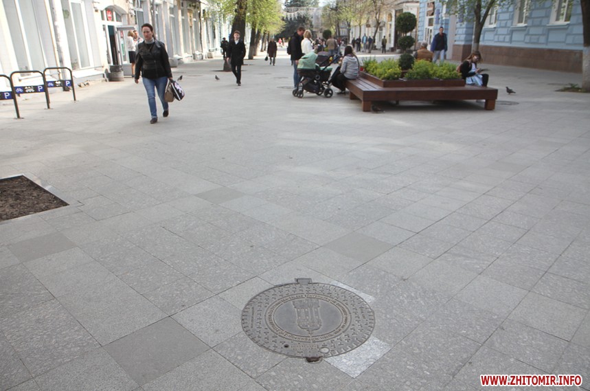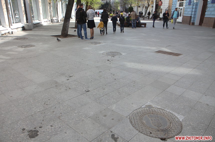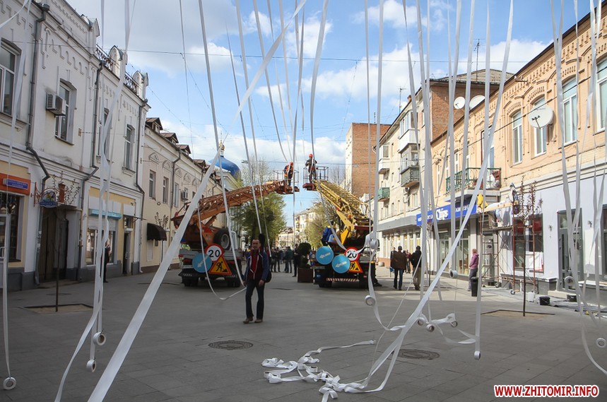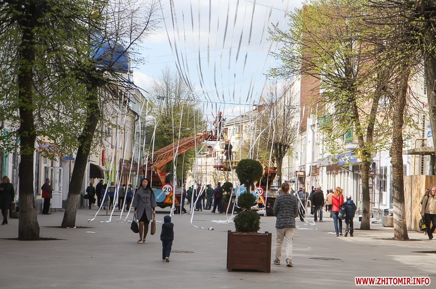 Пішохідну вулицю прикрашають білими стрічками, біля люків замінили кілька плиток, на фото вони трохи світліші. Комунальники чистять та метуть пішохідну вулицю, яка вже 21 квітня стане епіцентром святкових подій.
