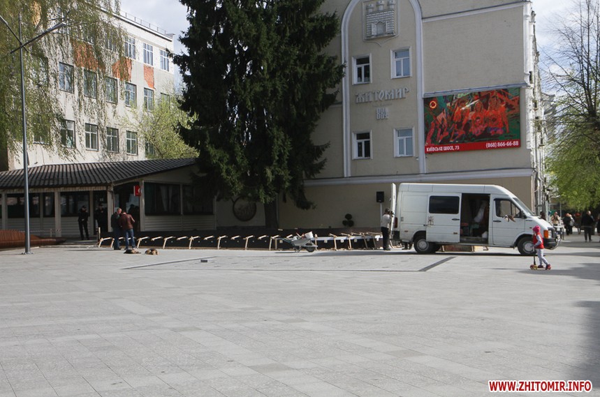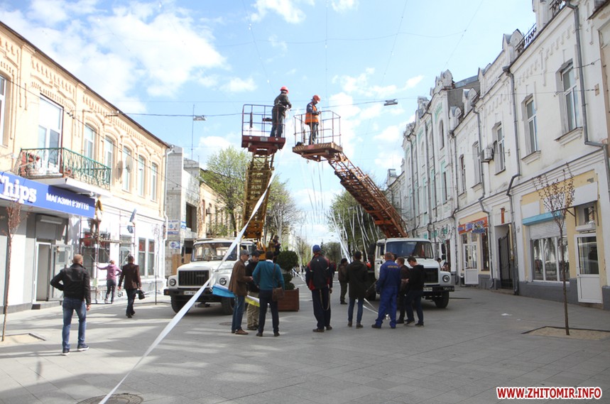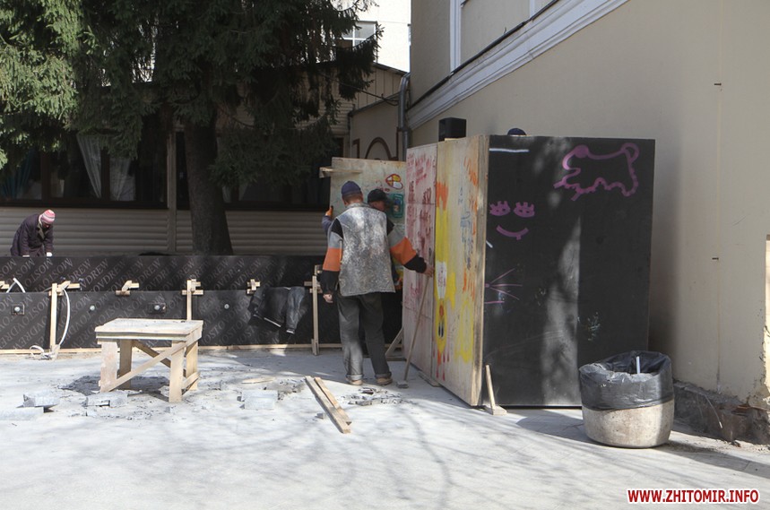 У Житомирі 20 квітня триває підготовка до урочистого відкриття фонтану на вулиці Михайлівській, яке співпало з дводенним відключенням води в місті.