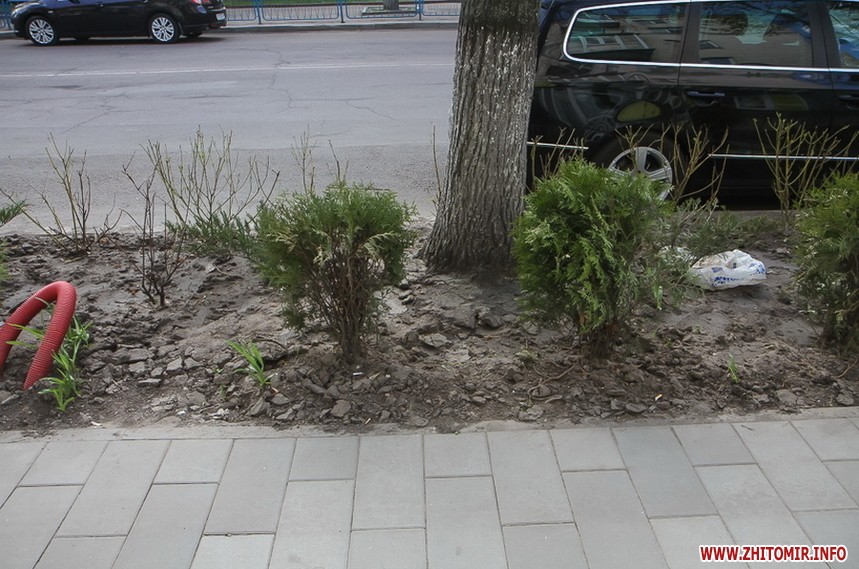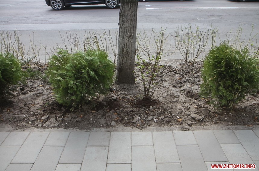 Частина низькорослих туй, які в жовтні 2016 року висадили на вулиці Театральній у Житомирі, почала хворіти і була поміщена у розсадник КП «Зеленбуд».