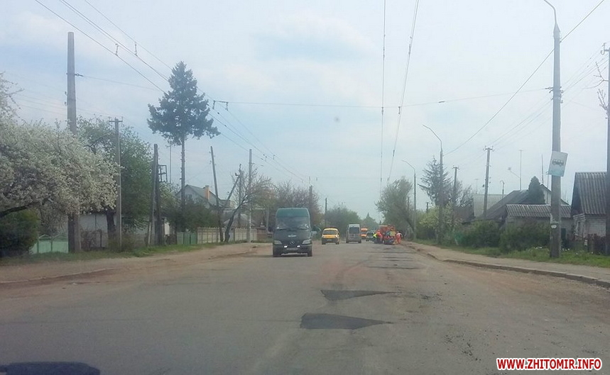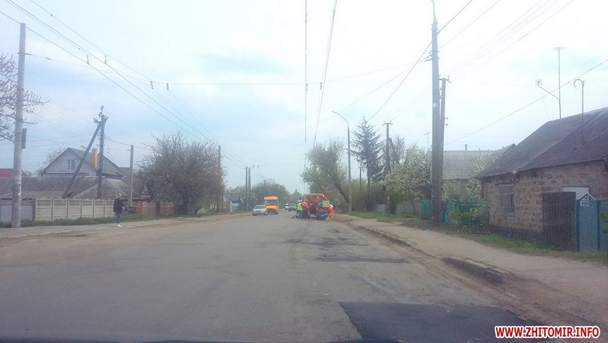 У Житомирі 25 квітня на вулиці Параджанова комунальники почали латати ями на дорозі.